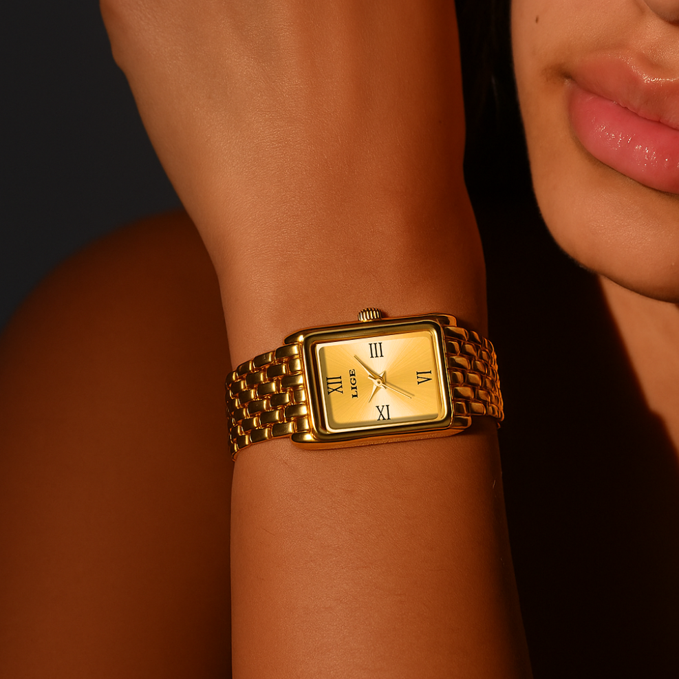 The LIGE Élégance channels timeless charm through its sculpted square case and fluid bracelet design. A refined essential that pairs effortlessly with silk, gold, and everything in between.